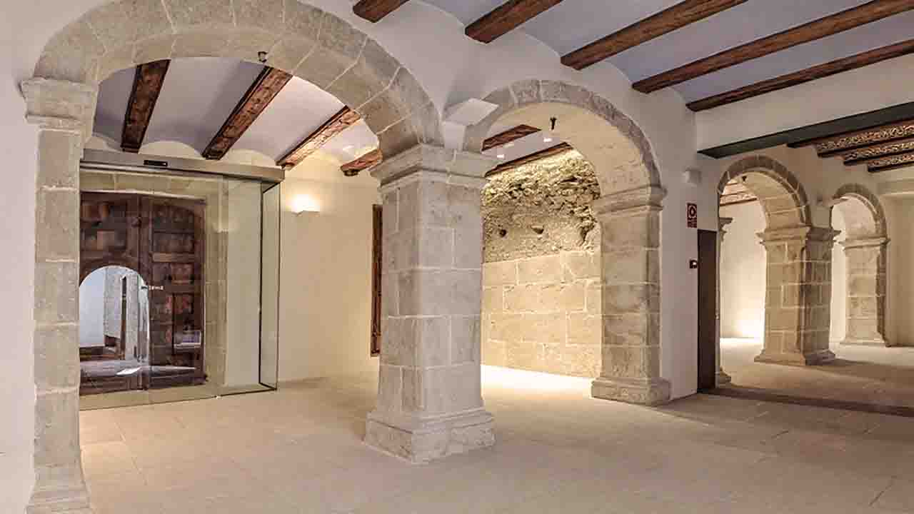 En nuestro paseo, llegamos a la calle Desamparats, donde se encuentra la Casa Abargues, una casa palaciega del siglo XVIII que alberga un museo trasportándote a la vida de la clase acomodada de la época. En su entrada principal, tallada en piedra, se encuentra el escudo heráldico familiar. Pudimos observar que destacan dos abarcas (calzado típico que da nombre al linaje de la familia). Nos permitieron entrar con el perro a visitarla. En el pasado, la familia Abargues era una de las más influyentes de Benissa y su hogar era el centro social del pueblo. Cada año, la familia organizaba una gran fiesta para celebrar la vendimia.