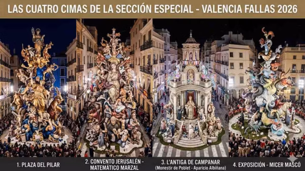 De las nueve fallas que componen la Sección Especial —la máxima categoría—, hay cuatro que este 2026 destacan como verdaderos ochomiles: las de mayor presupuesto, trayectoria y favoritismo. Son nuestras cimas de 4.000 metros. Las otras cinco son excelentes, pero si el tiempo o las fuerzas te apremian, concéntrate en estas.